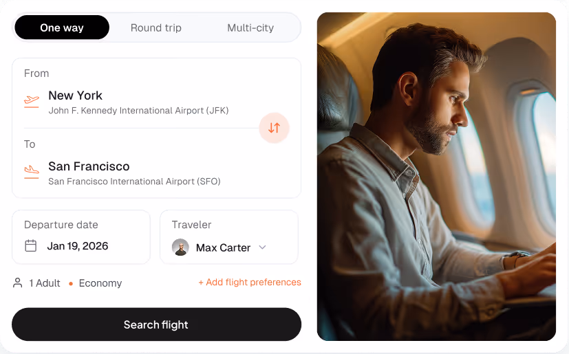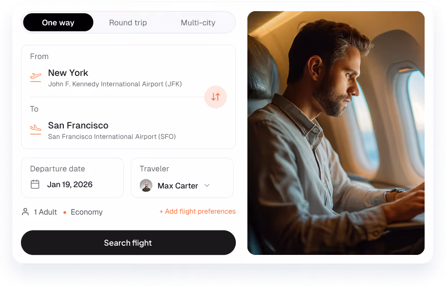 Our corporate travel management software aggregates inventory from GDS, NDC, and aggregators like Priceline. This ensures 100% coverage, providing employees with the same flights and hotels they would find on consumer-grade websites.