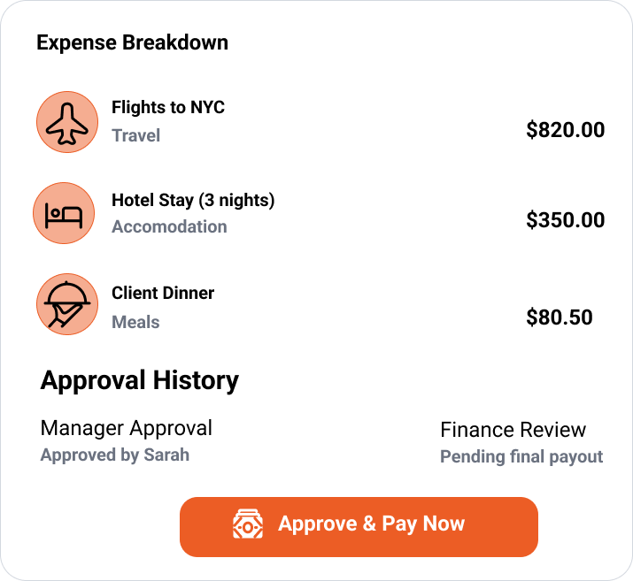 - Large companies gain control over approvals, filters, and GL mapping, plus audit trails for compliance teams.