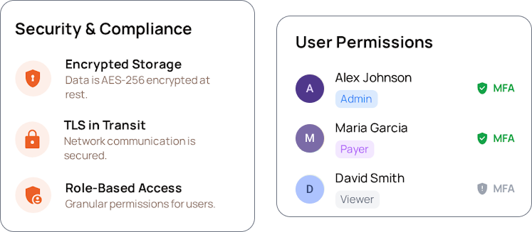 - Role-based payment permissions and MFA