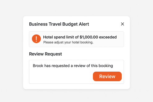 If a booking exceeds a limit, the system instantly notifies the traveler and the approver, helping you correct overspending before it becomes a reimbursement issue.