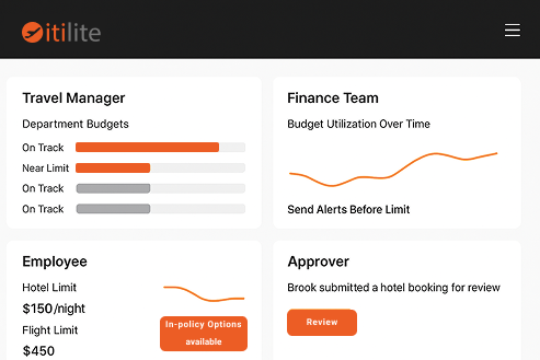 When someone books a trip or files an expense that nears or exceeds a limit, Itilite automatically alerts the right people, traveler, approver, or finance, based on your policy.