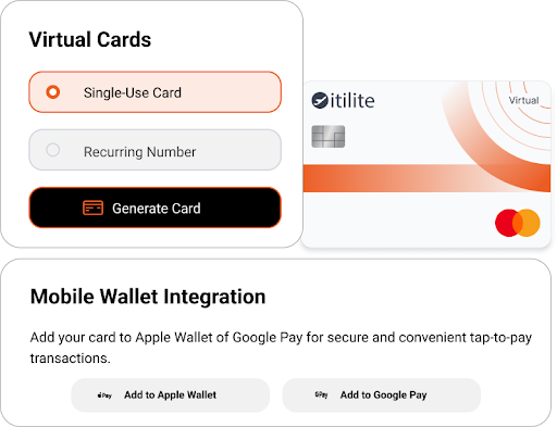 With Itilite, businesses can issue an unlimited number of virtual cards for one-time purchases and physical cards for regular expenses, all with no additional fees.