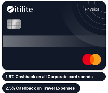 Itilite Corporate Expenses Cards offer a flat 1.5% cashback on all purchases, with up to 2.5% cashback on significant travel spends.